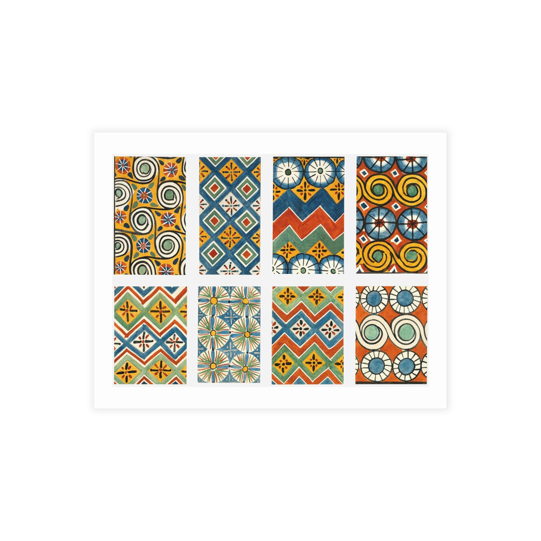 Bring timeless elegance to your correspondences with this **Ancient Egyptian Tomb Ceiling Pattern Art Print**, inspired by the breathtaking designs adorning the shared tomb of master sculptors Ipuky and Nebamun in western Thebes. Originally painted over 3,000 years ago, these precise geometric motifs—spirals, rosettes, stars, and chevrons—symbolized *maat*, the harmony that sustained the cosmos. In 1921, artist **Nina de Garis Davies** recreated the original ceiling design for The Metropolitan Museum’s Egyptian Expedition, preserving its rhythmic beauty in exquisite tempera detail. This Vintage Artwork celebrates ancient artistry and balance. A touch of royal sophistication.