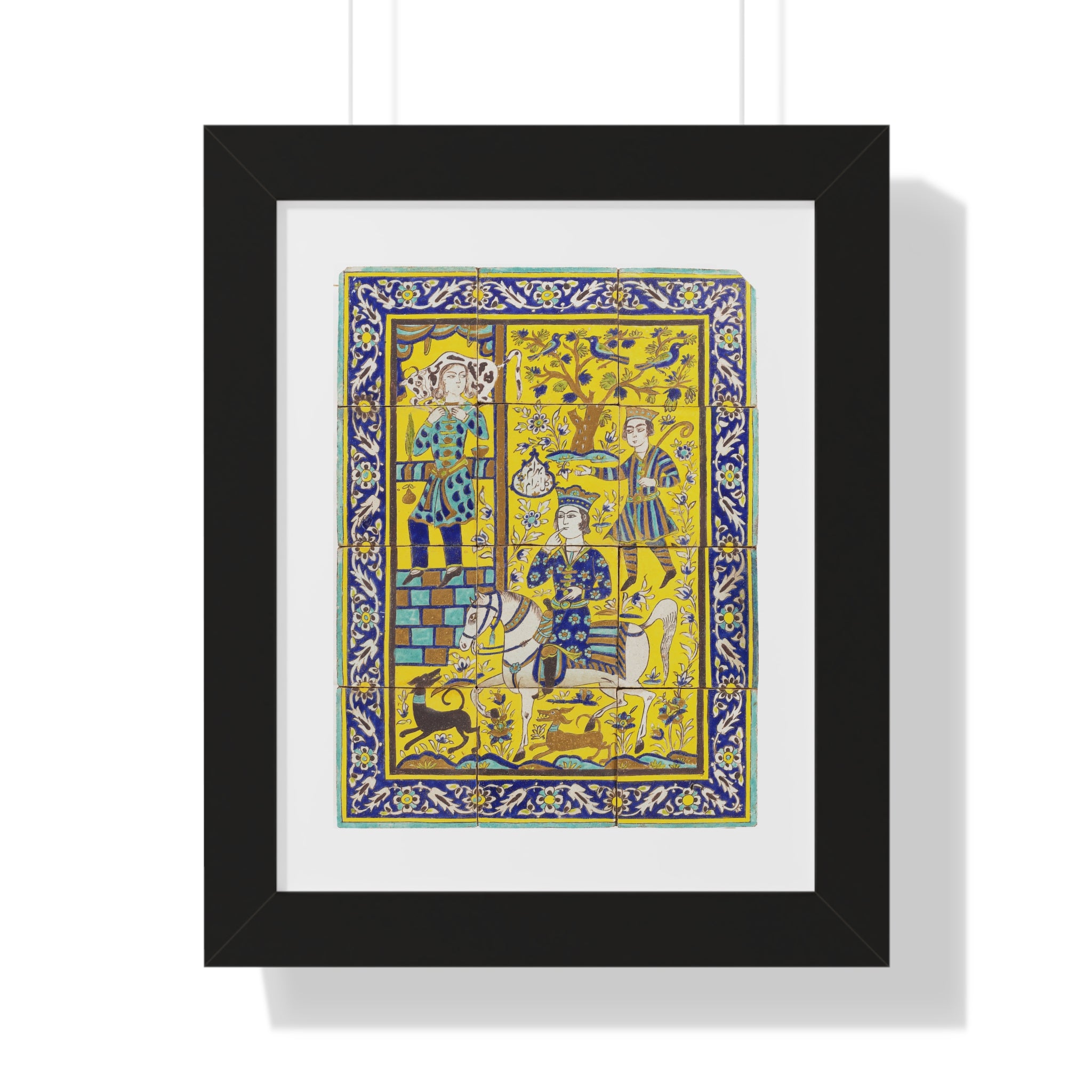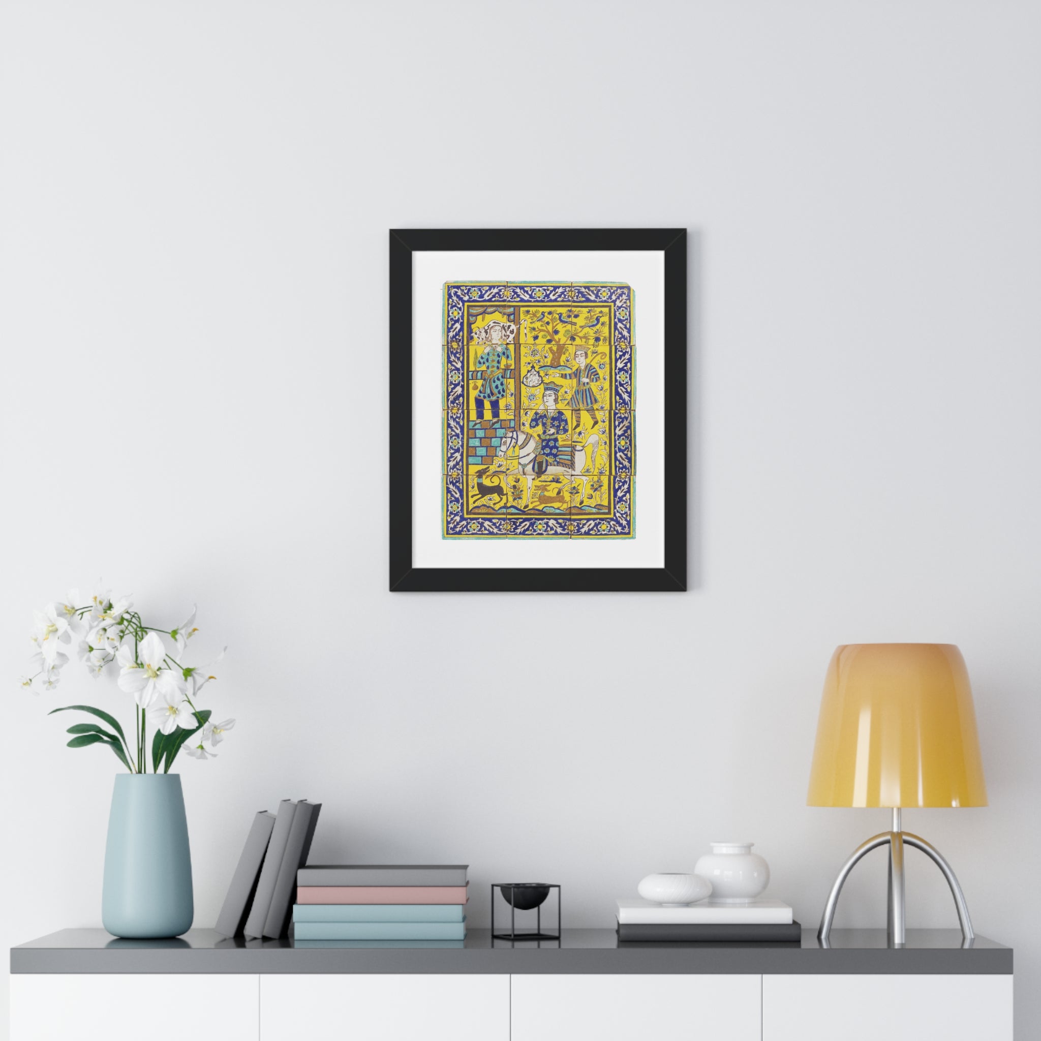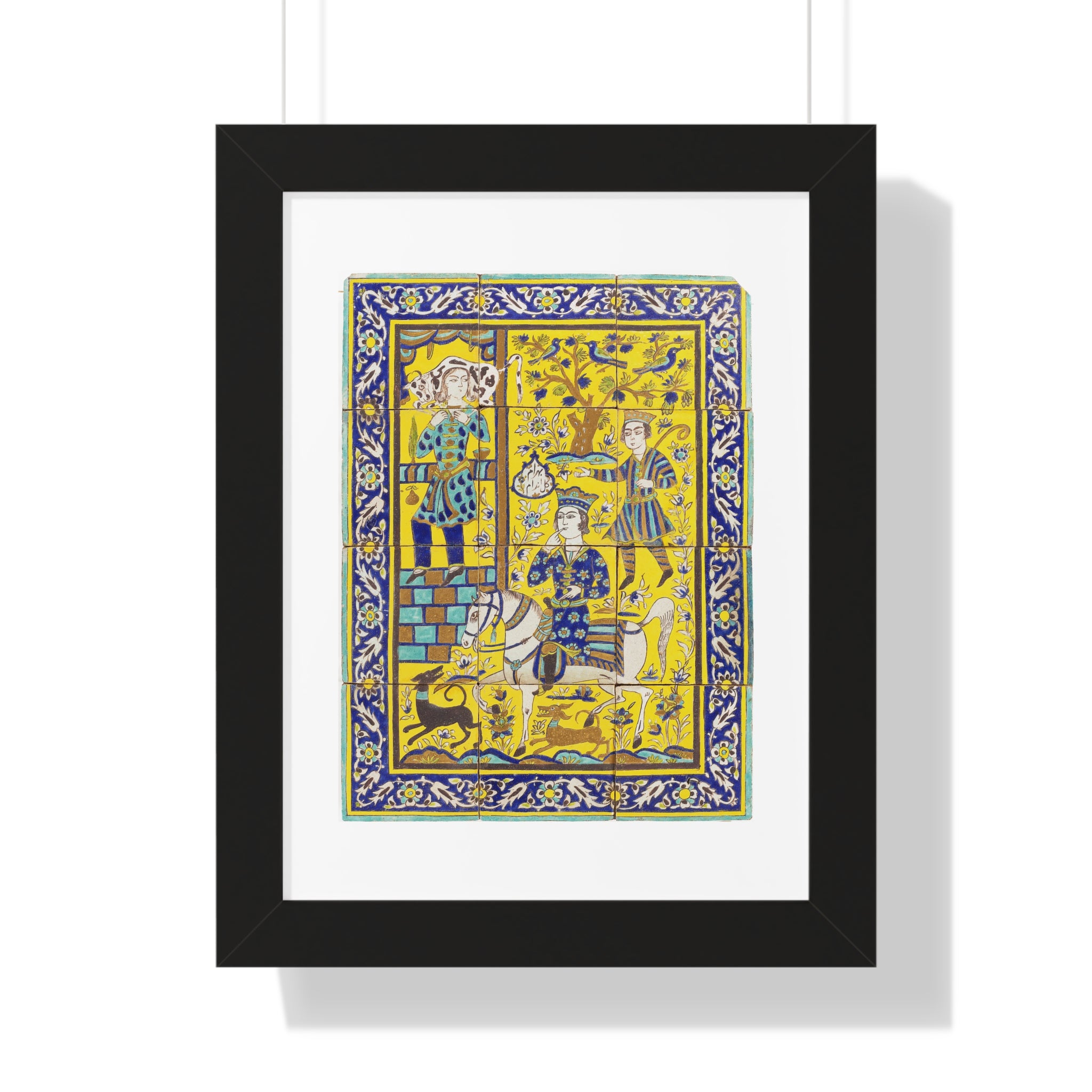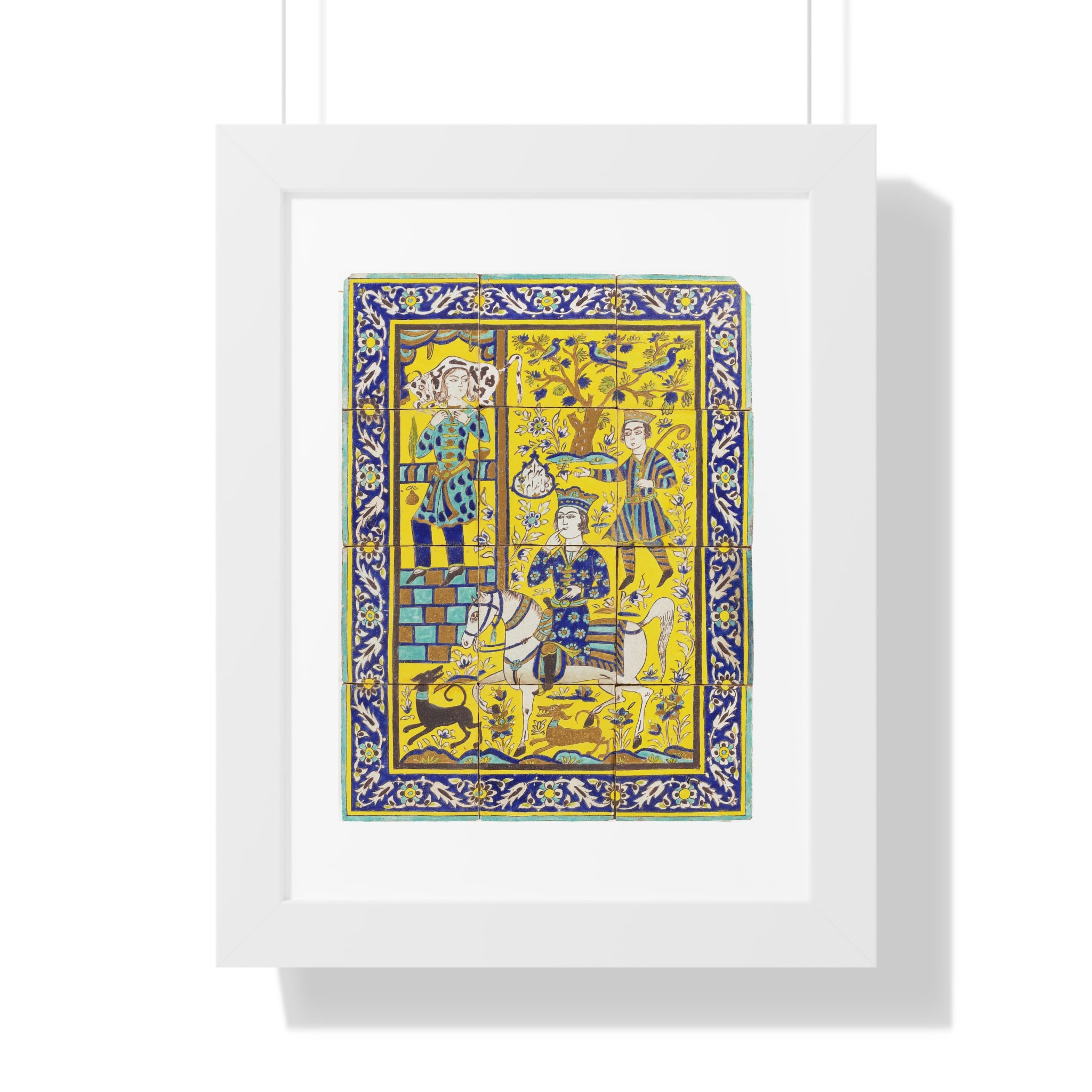 Framed Vertical Poster - Bahram Gur and Fitna Tile Painting