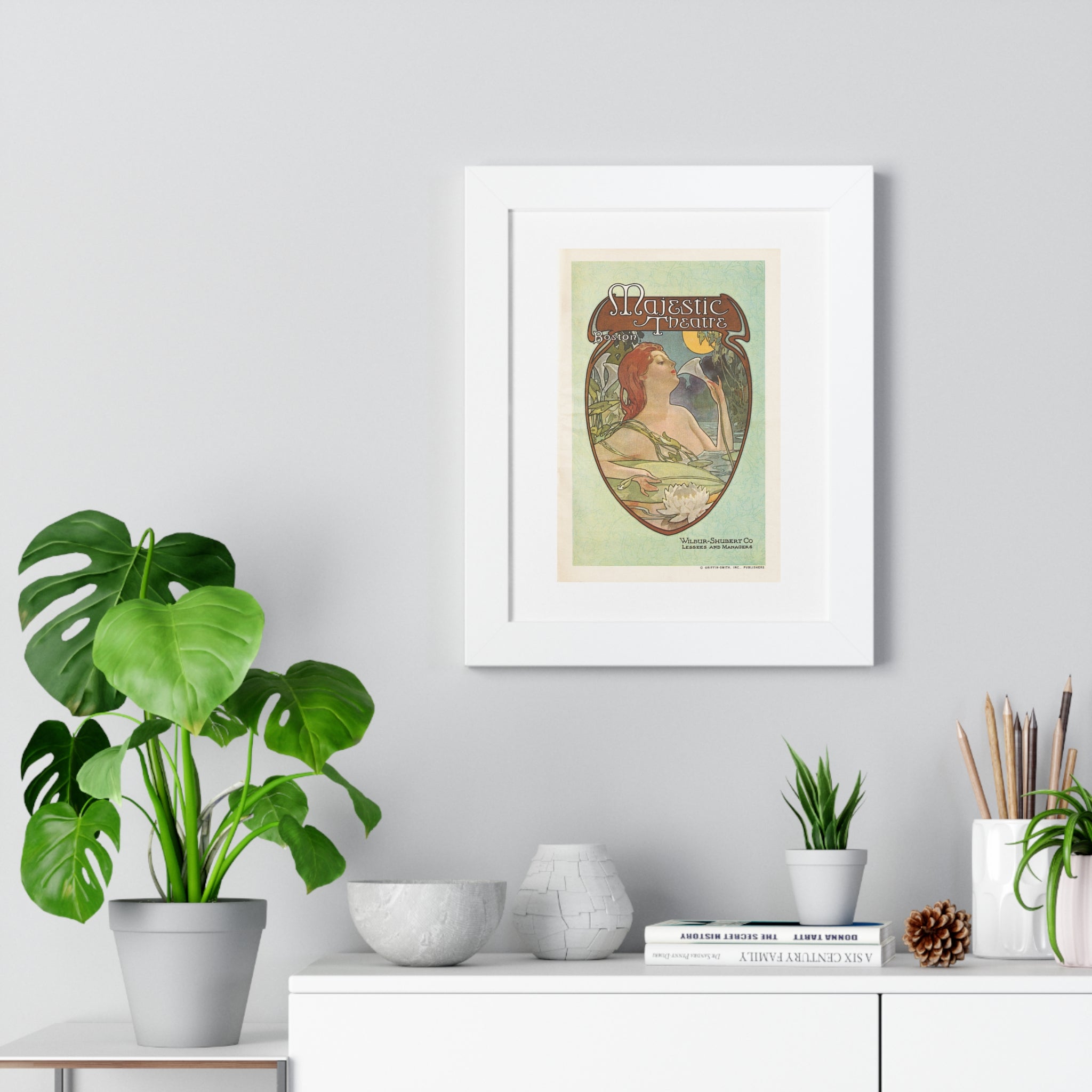 Framed Vertical Poster - Boston’s Majestic Theatre, Art Nouveau Playbill Artwork 1914
