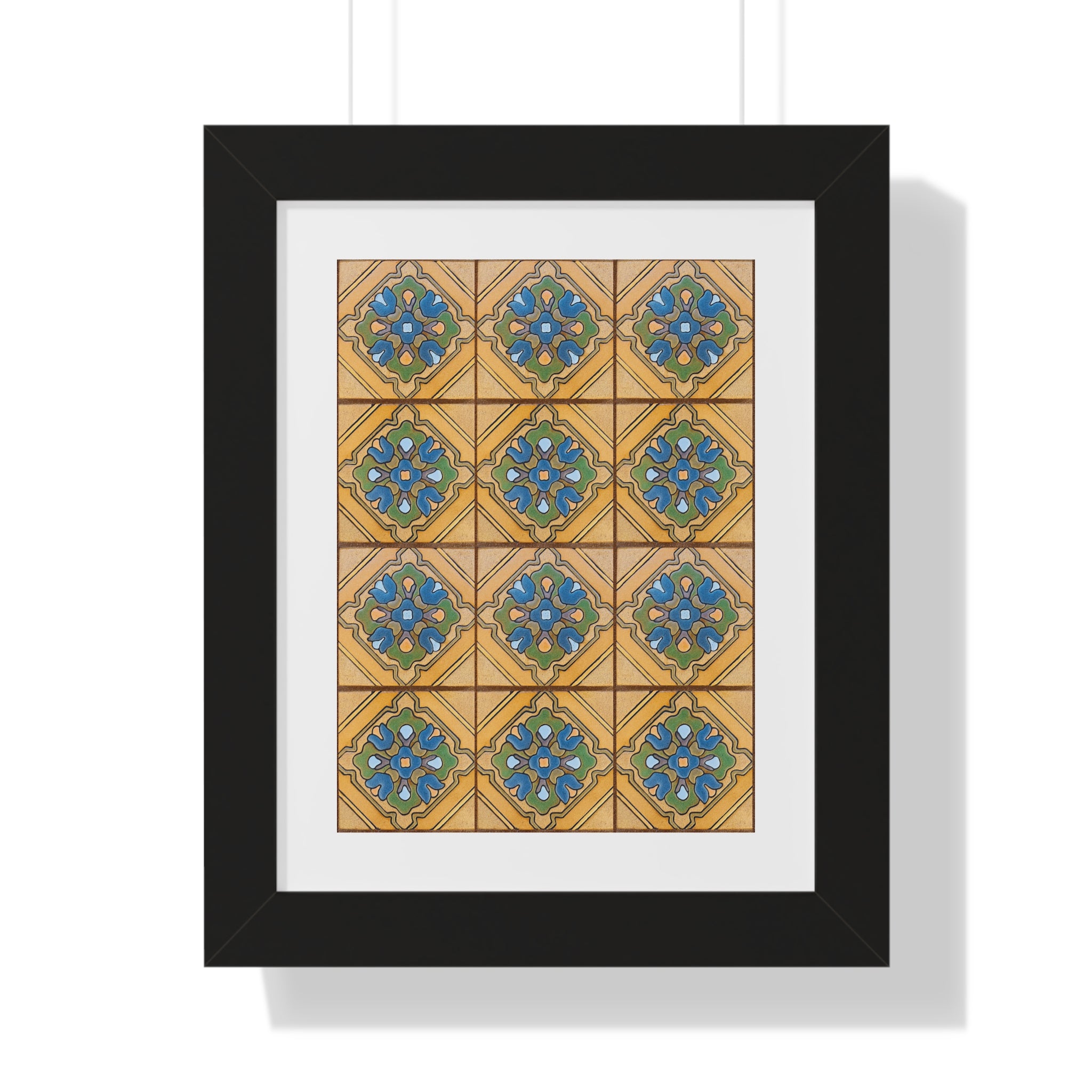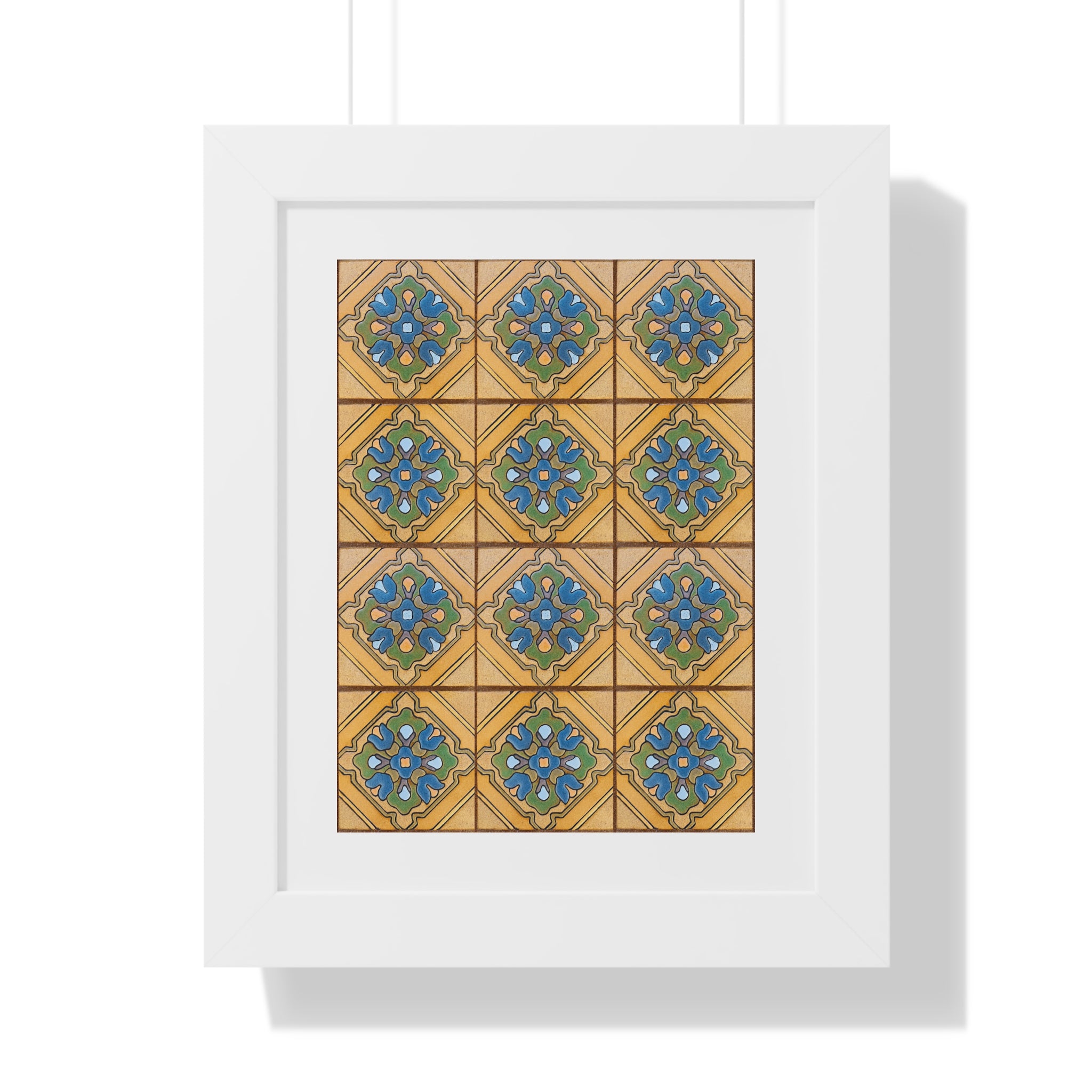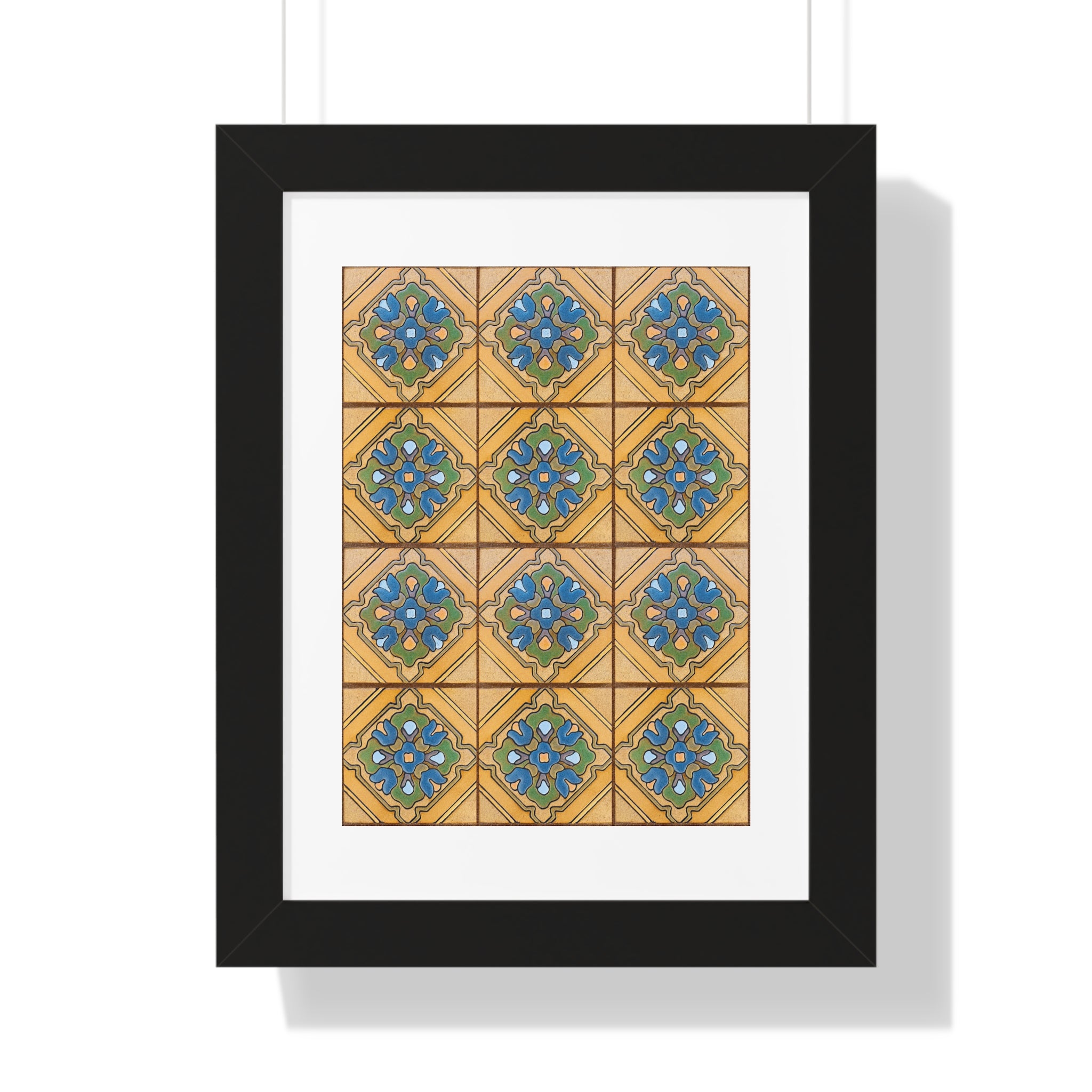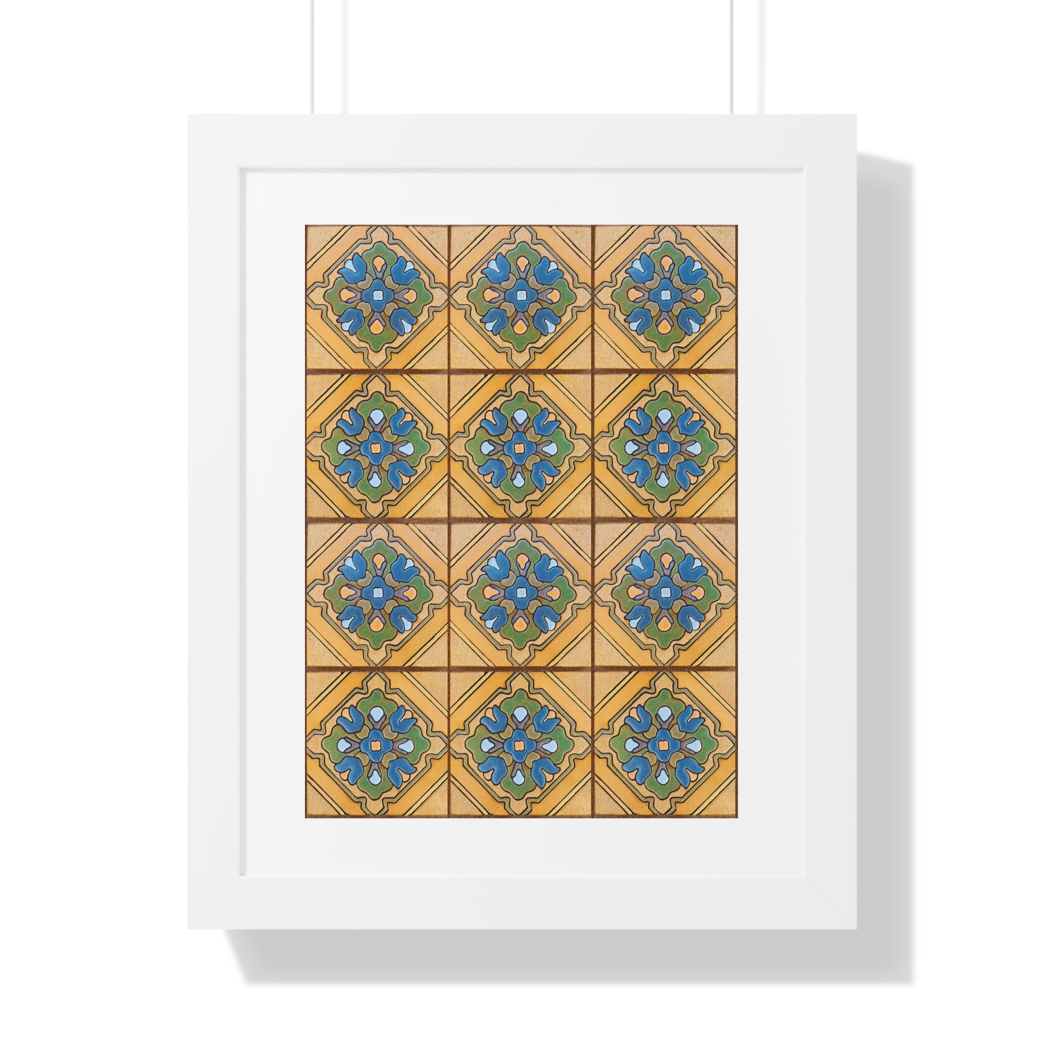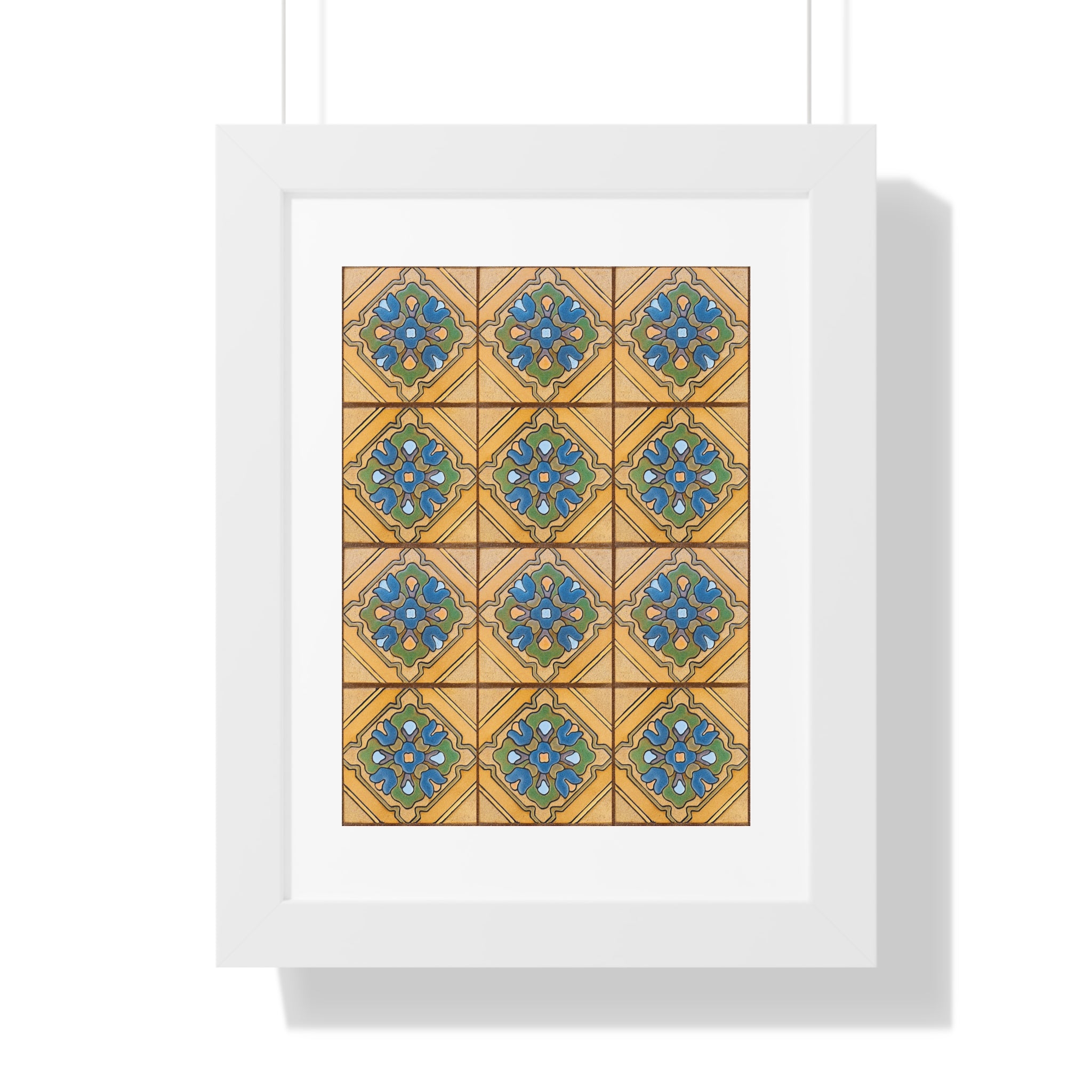 Framed Vertical Poster - Malibu Potteries Tile, Adamson House