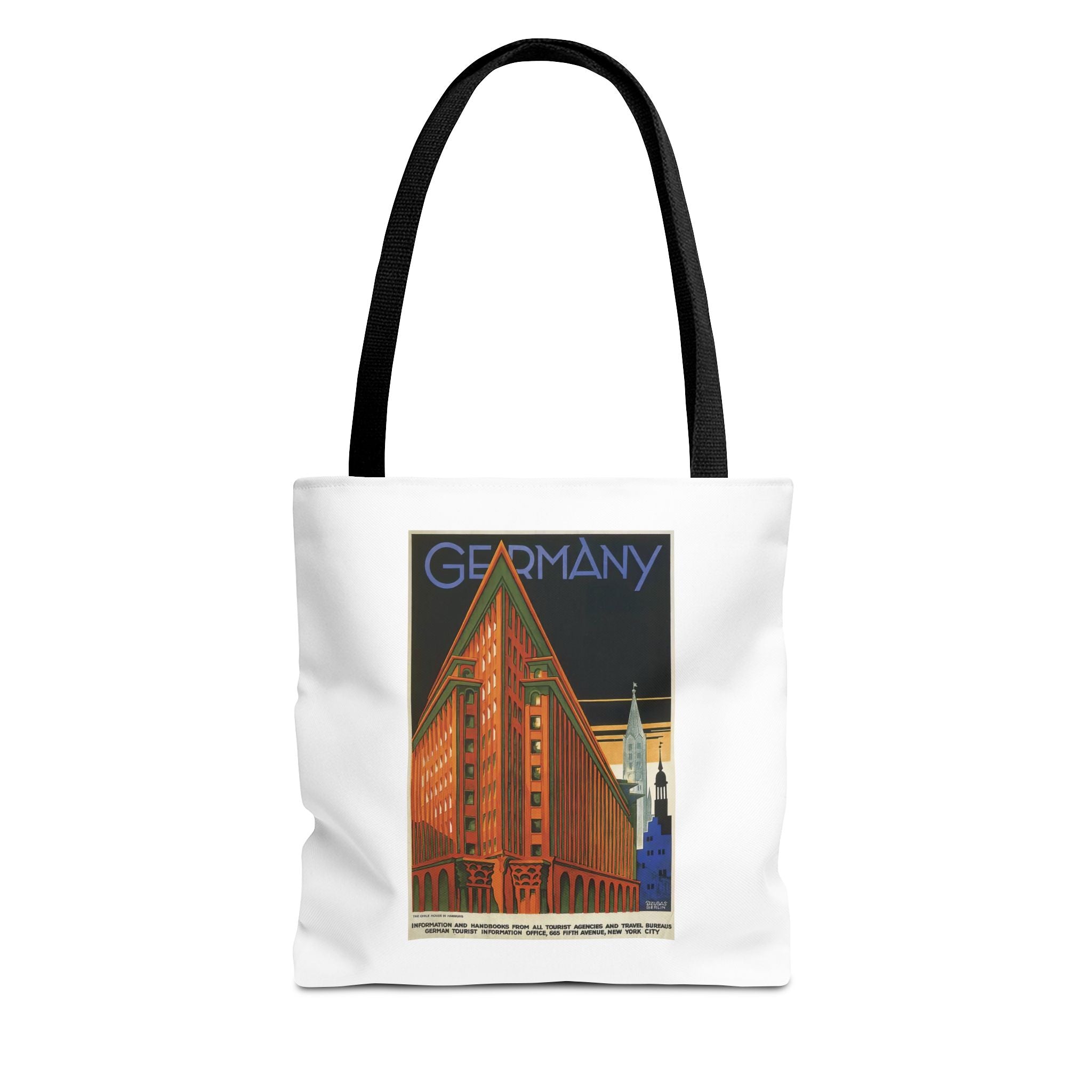 Celebrate Hamburg’s iconic Chilehaus with this tote bage featuring Vintage Artwork by Berlin artist Willy Dzubas (1877–1947). Dzubas captures Fritz Höger’s 1922–24 brick‑expressionist Kontorhaus in bold geometry and deep contrasts, turning a merchant’s shipping legacy into a symbol of Germany’s post‑WWI renewal. Perfect for lovers of architectural history, modernist graphics, and maritime‑inspired interiors—this piece brings both provenance and punch to your everyday.