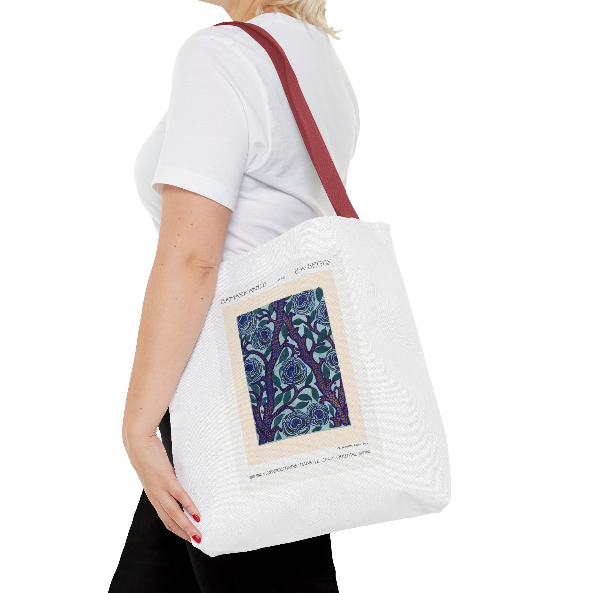 Stylish Tote Bag - Stenciled Flowers in Oriental Style