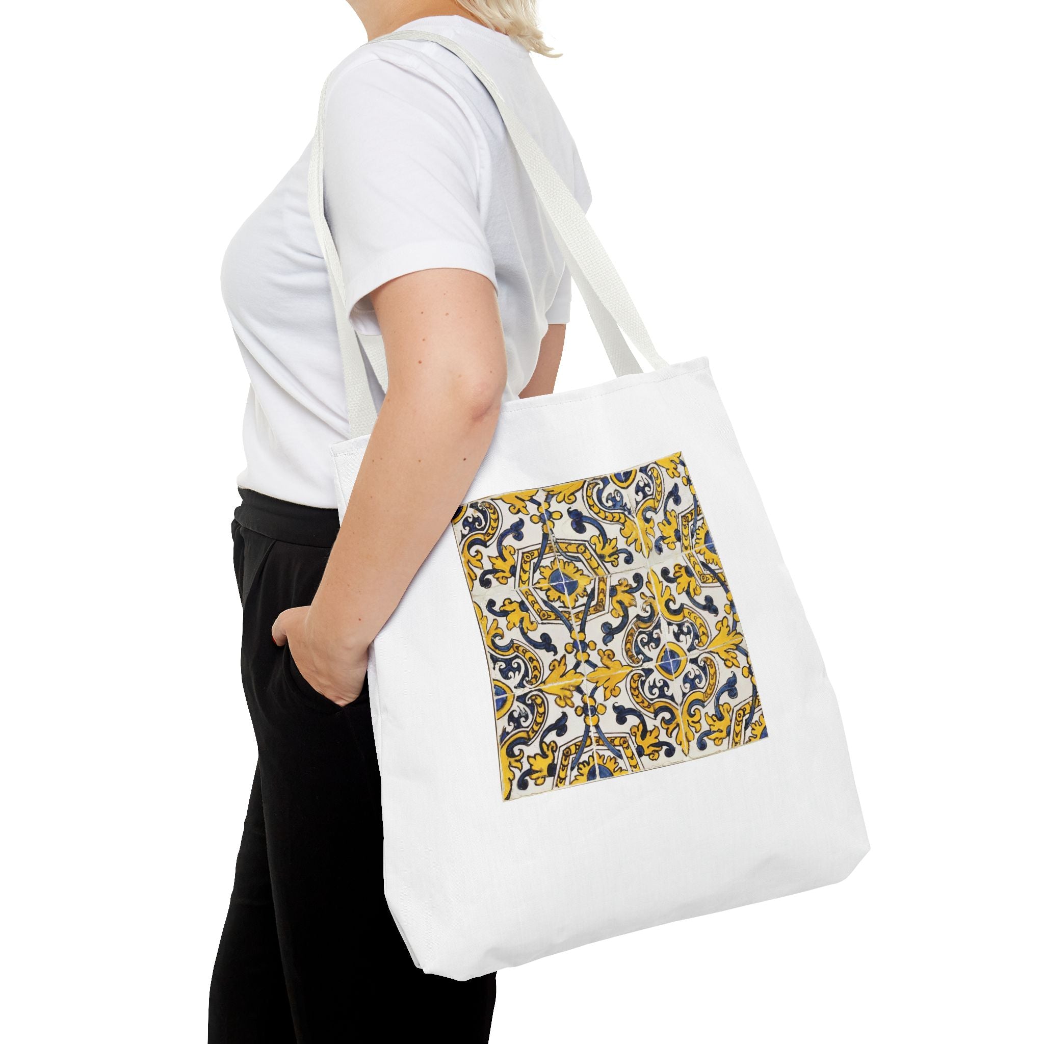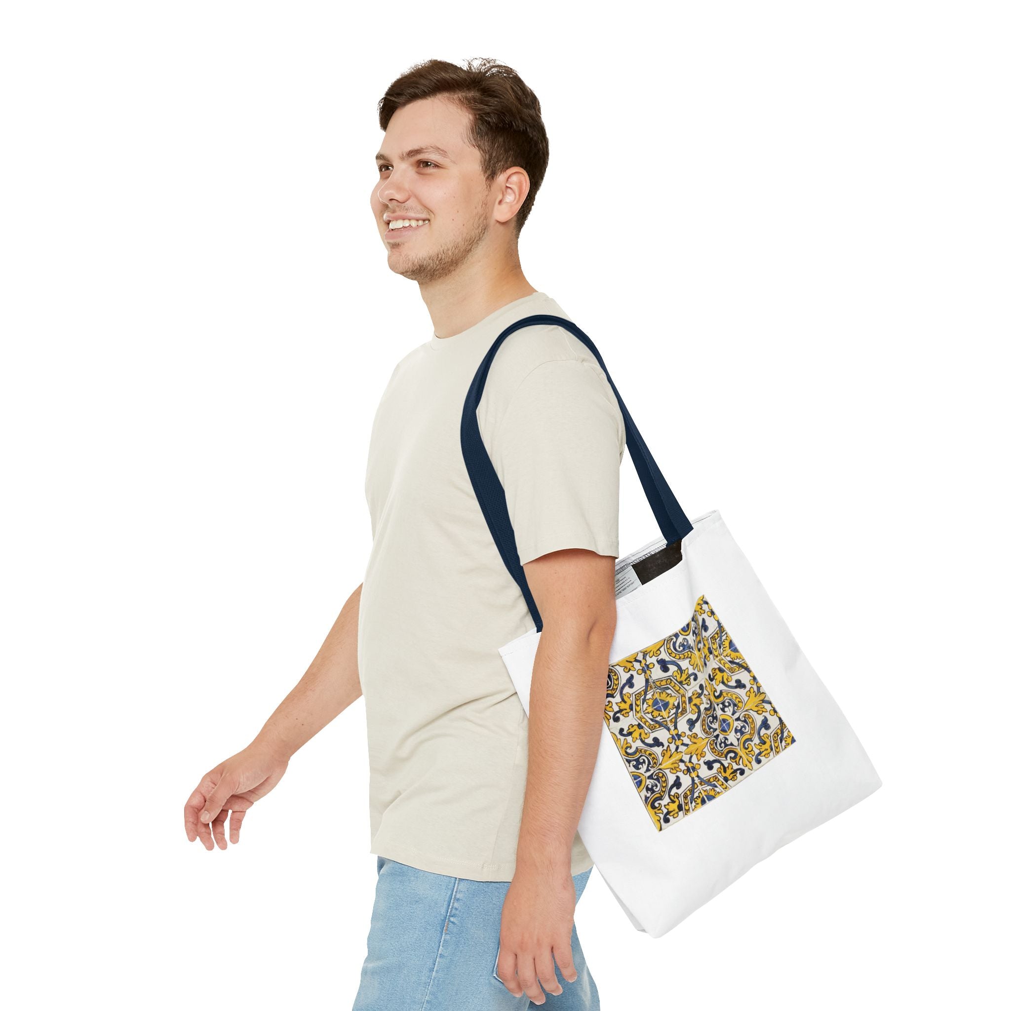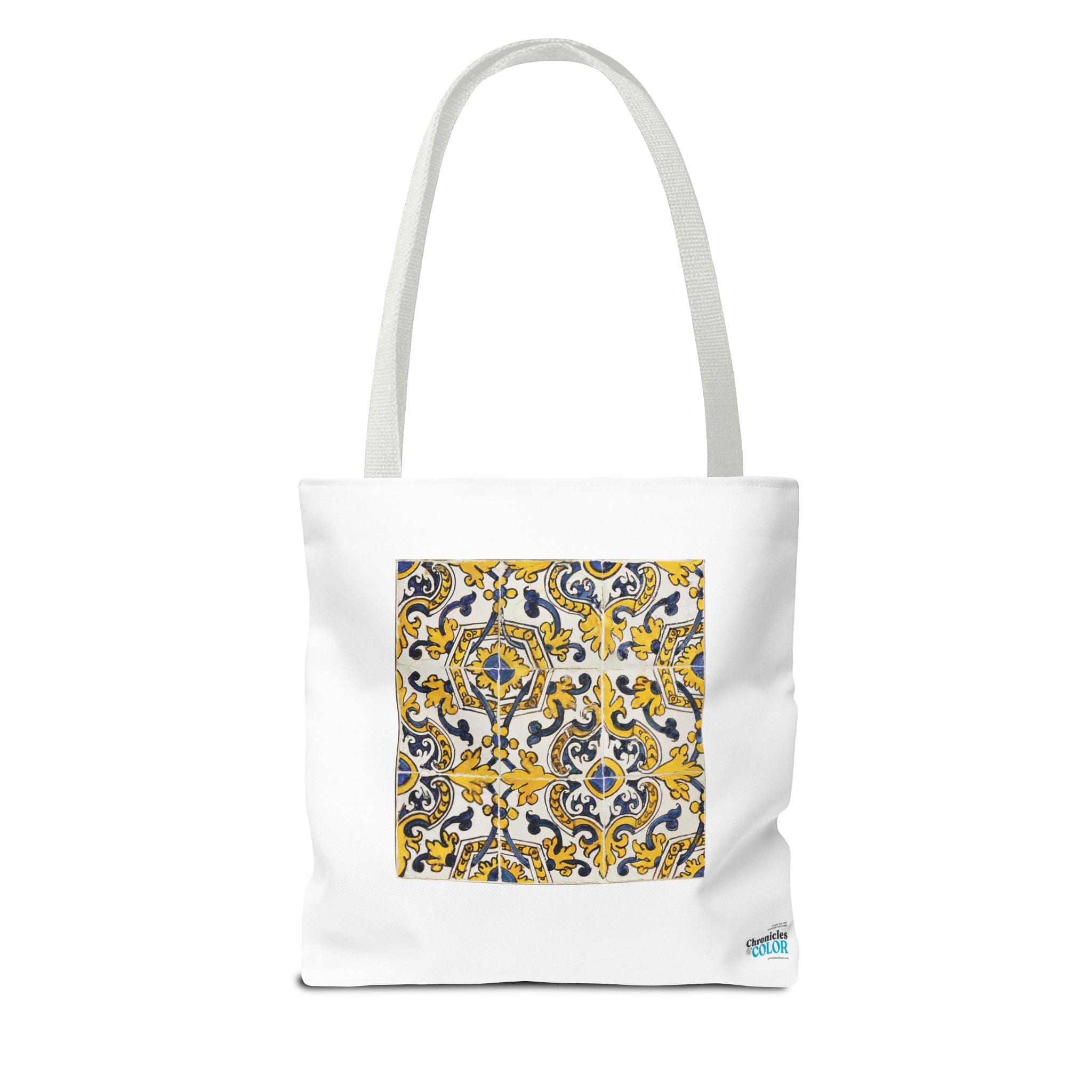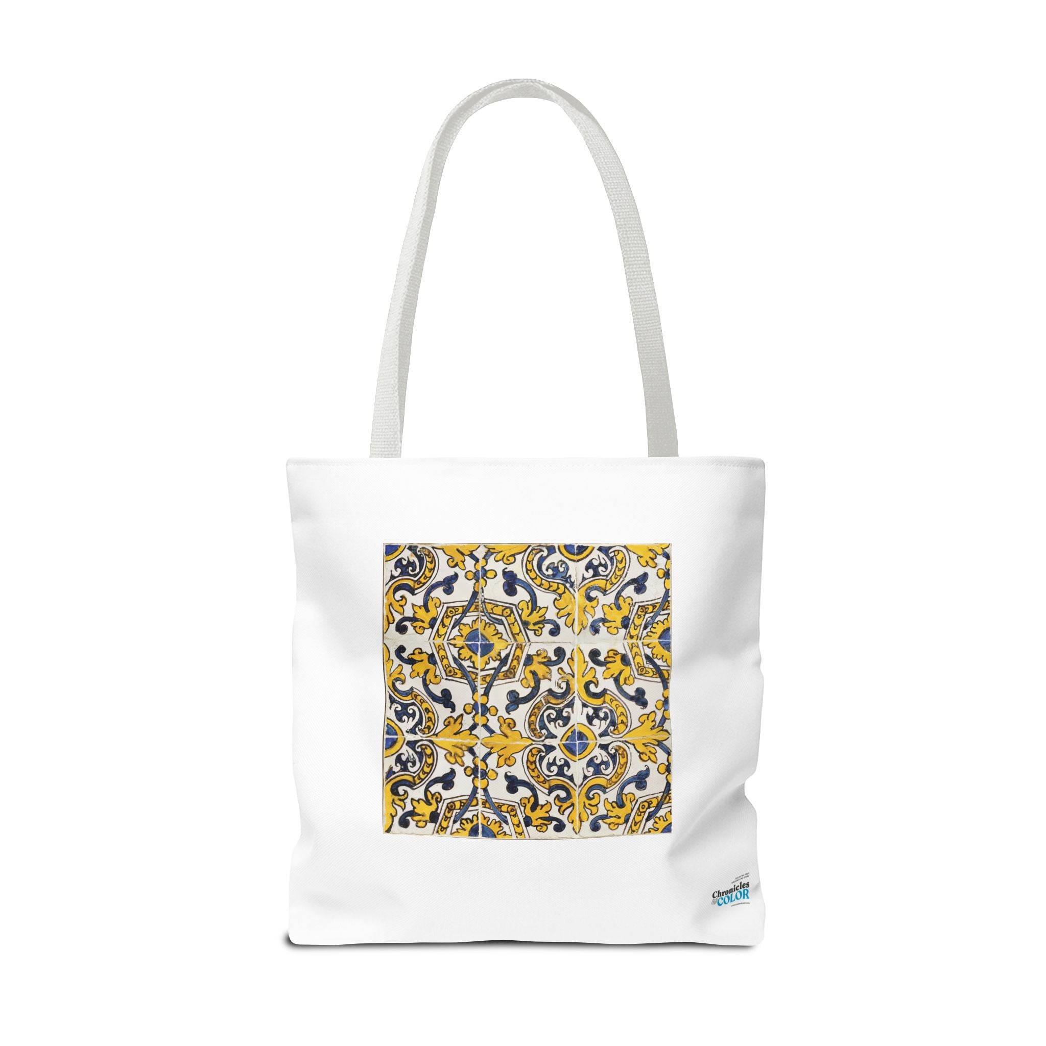 Celebrate the timeless beauty of Portuguese craftsmanship with this Vintage Portuguese Tile Tote Bag. Inspired by authentic 17th-century azulejos from the renowned Oficina de Lisboa (Lisbon Workshop), this design brings the spirit of old-world artistry into your living space. Hand-painted motifs in cobalt blue, golden yellow, and white create a seamless “tapete,” or carpet pattern, that reflects both balance and devotion. The intricate scrolls and floral flourishes echo Portugal’s Baroque elegance—where every brushstroke tells a story of patience, light, and cultural pride. Perfect for adding history and charm to your day.
