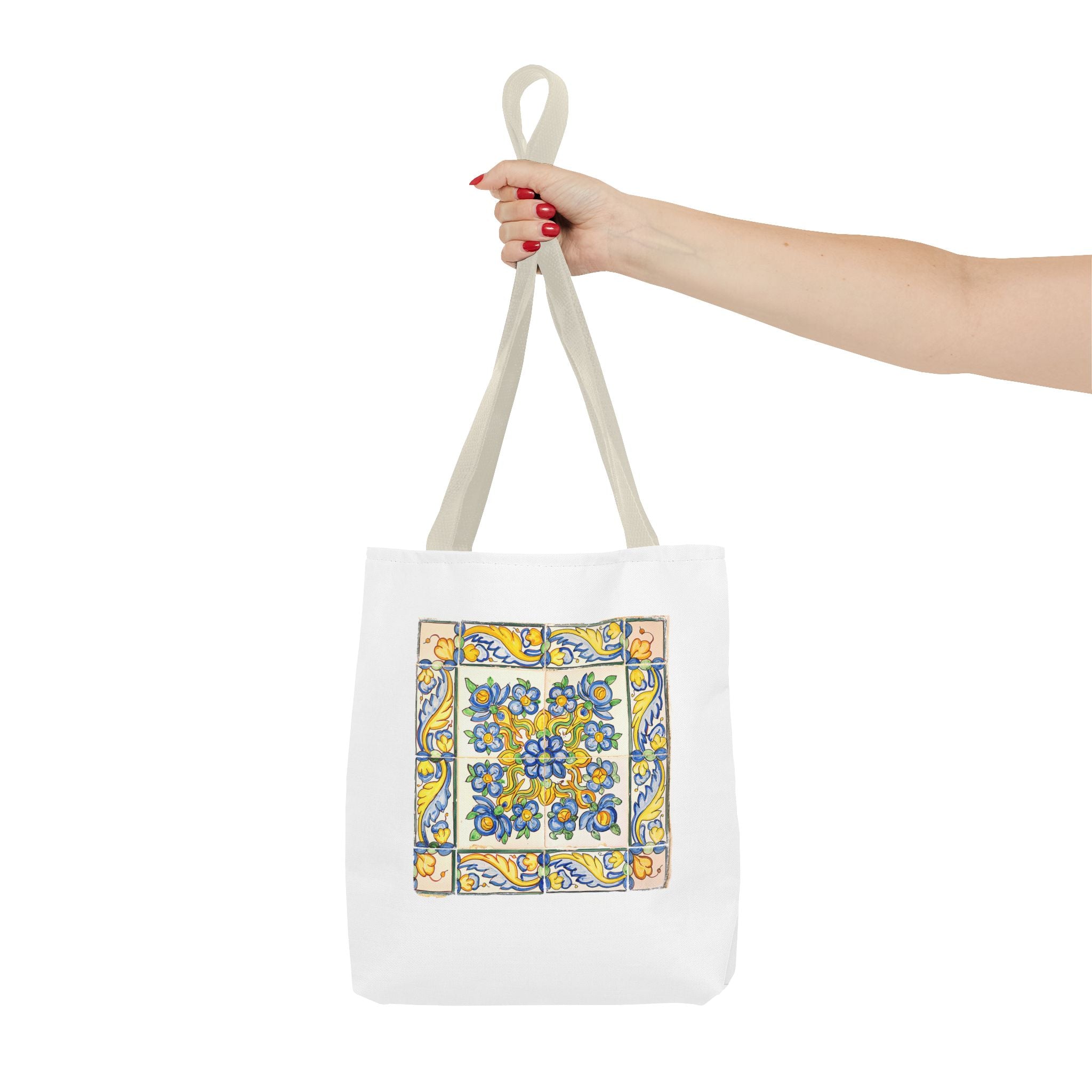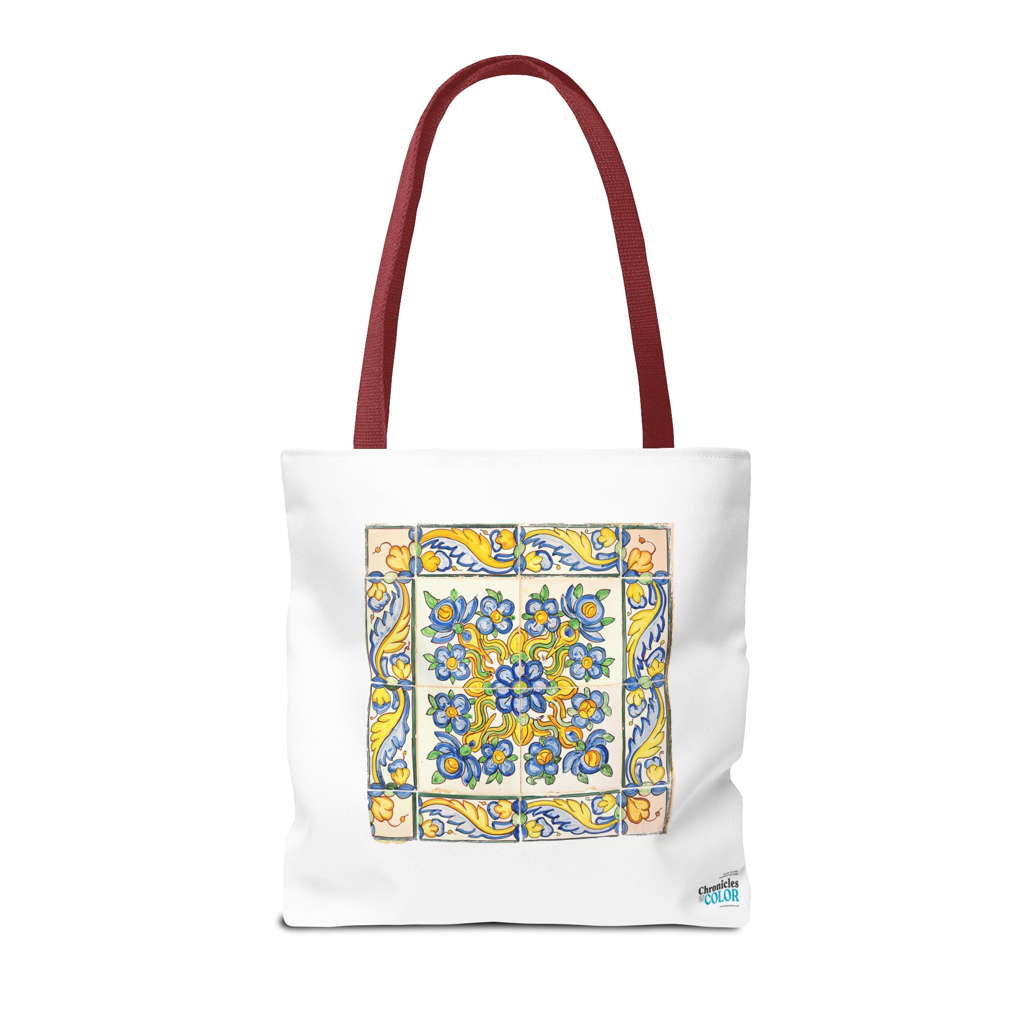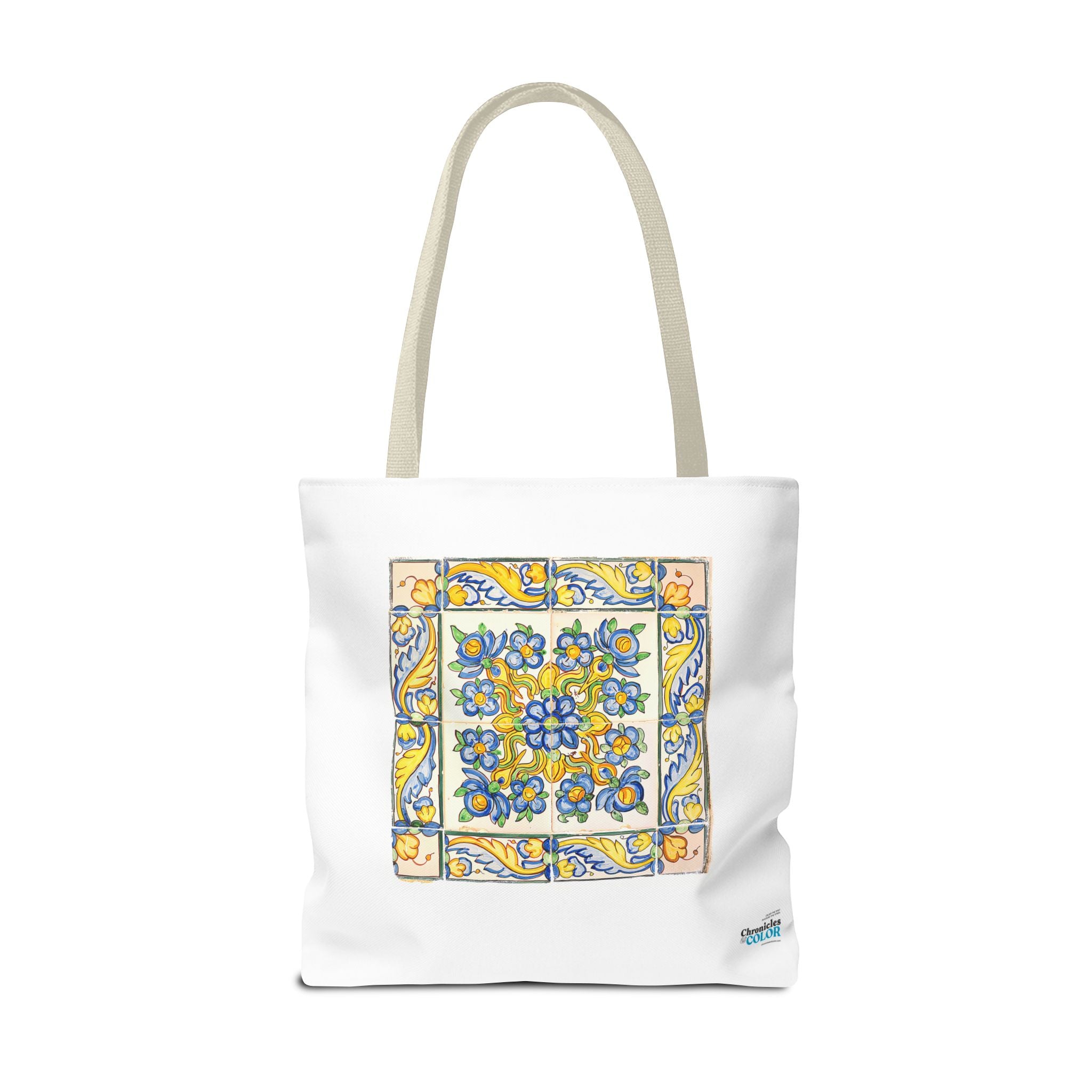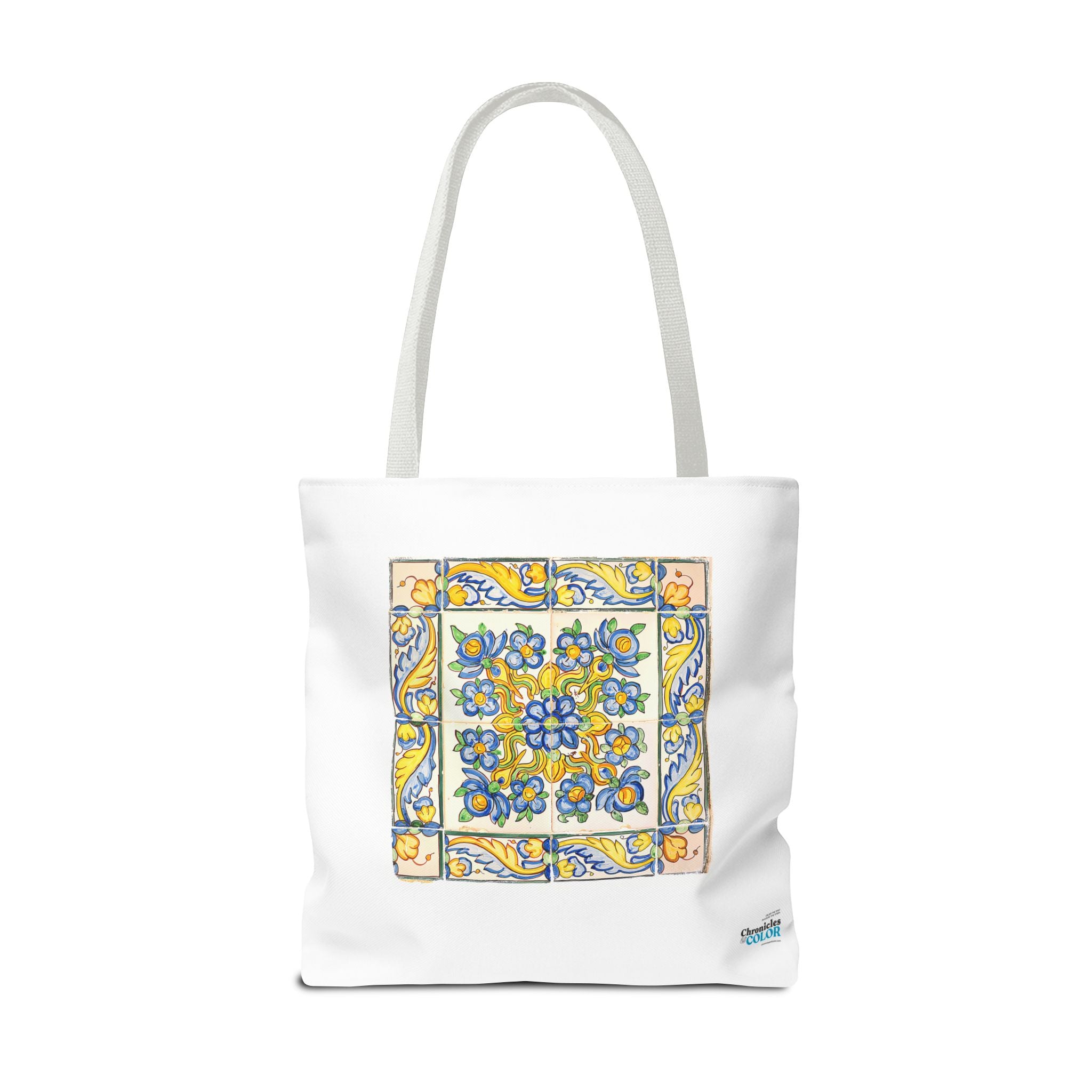 Celebrate the timeless beauty of Portuguese craftsmanship with this Vintage Yellow Floral Tile Pattern Tote Bag. Inspired by eighteenth-century azulejos, this design captures the graceful fusion of Baroque drama and Rococo elegance. Hand-painted motifs of curling vines and delicate blossoms evoke the artistry that once adorned palaces and cathedrals across Lisbon. The bright cobalt and golden hues dance across a radiant white glaze—a tribute to the tin-oxide technique that gave these ceramics their luminous charm. Perfect for adding a touch of historic warmth and European flair to your day.