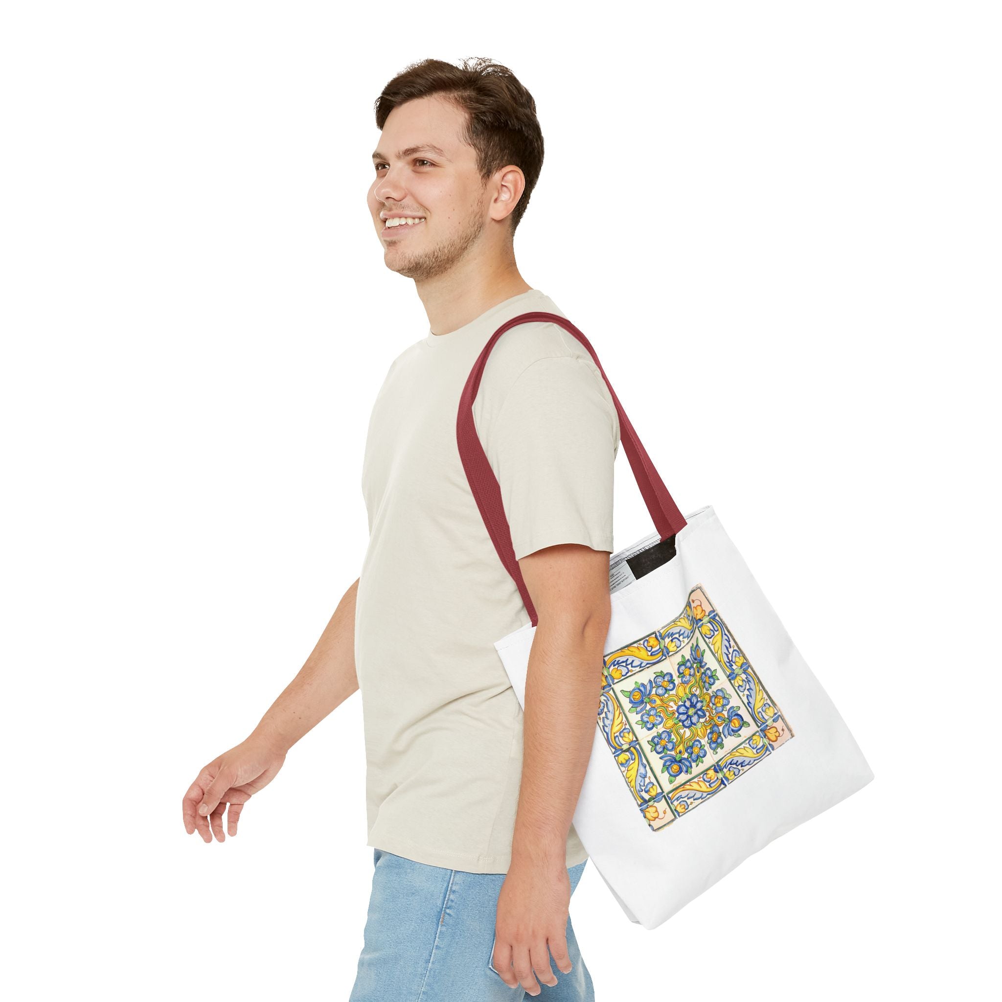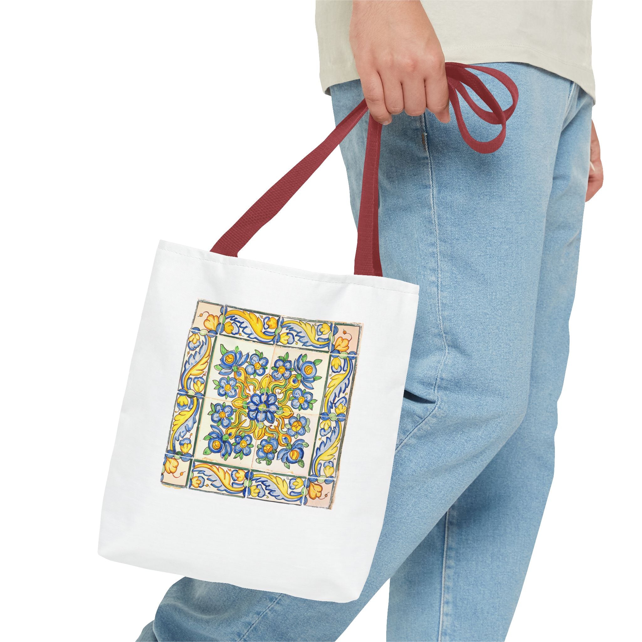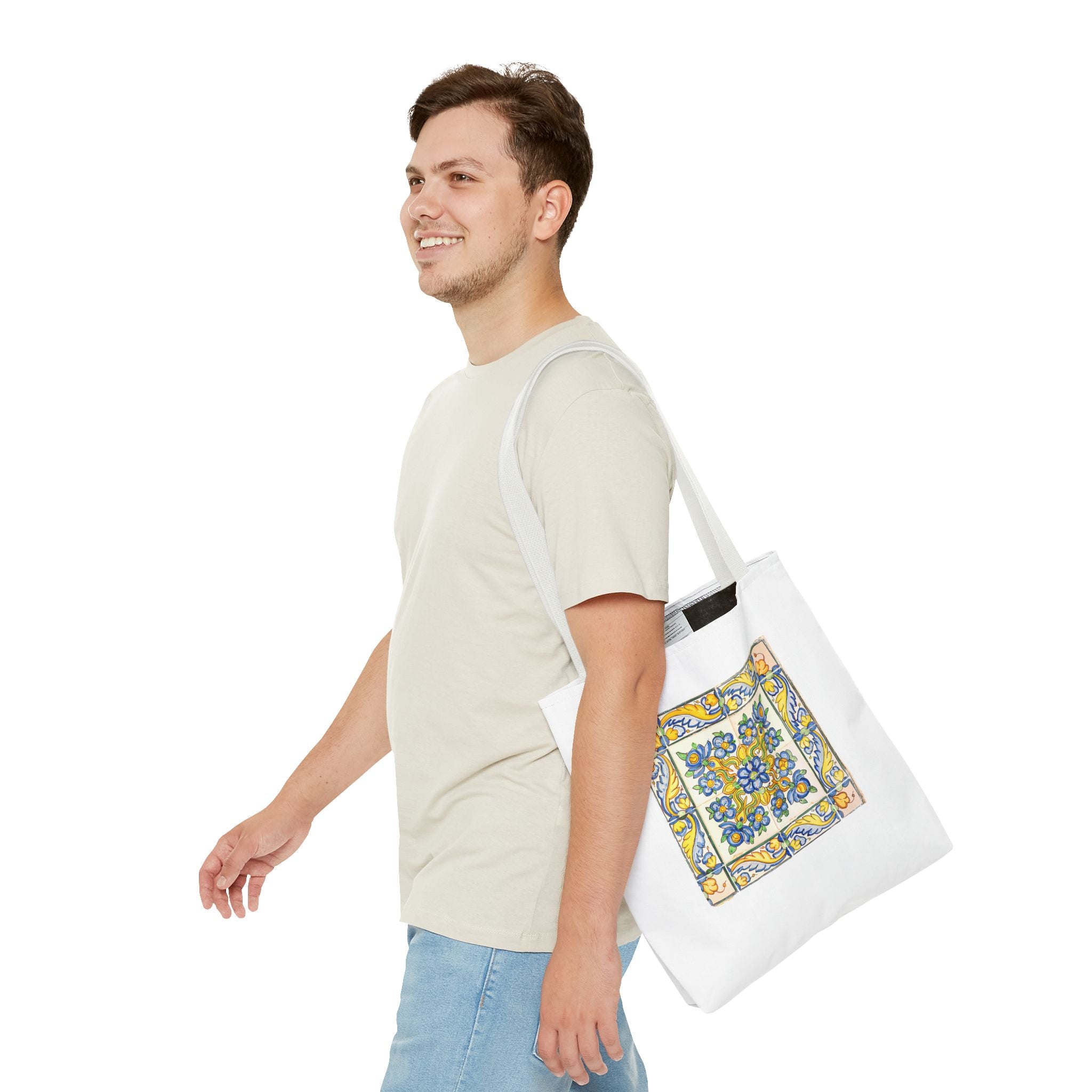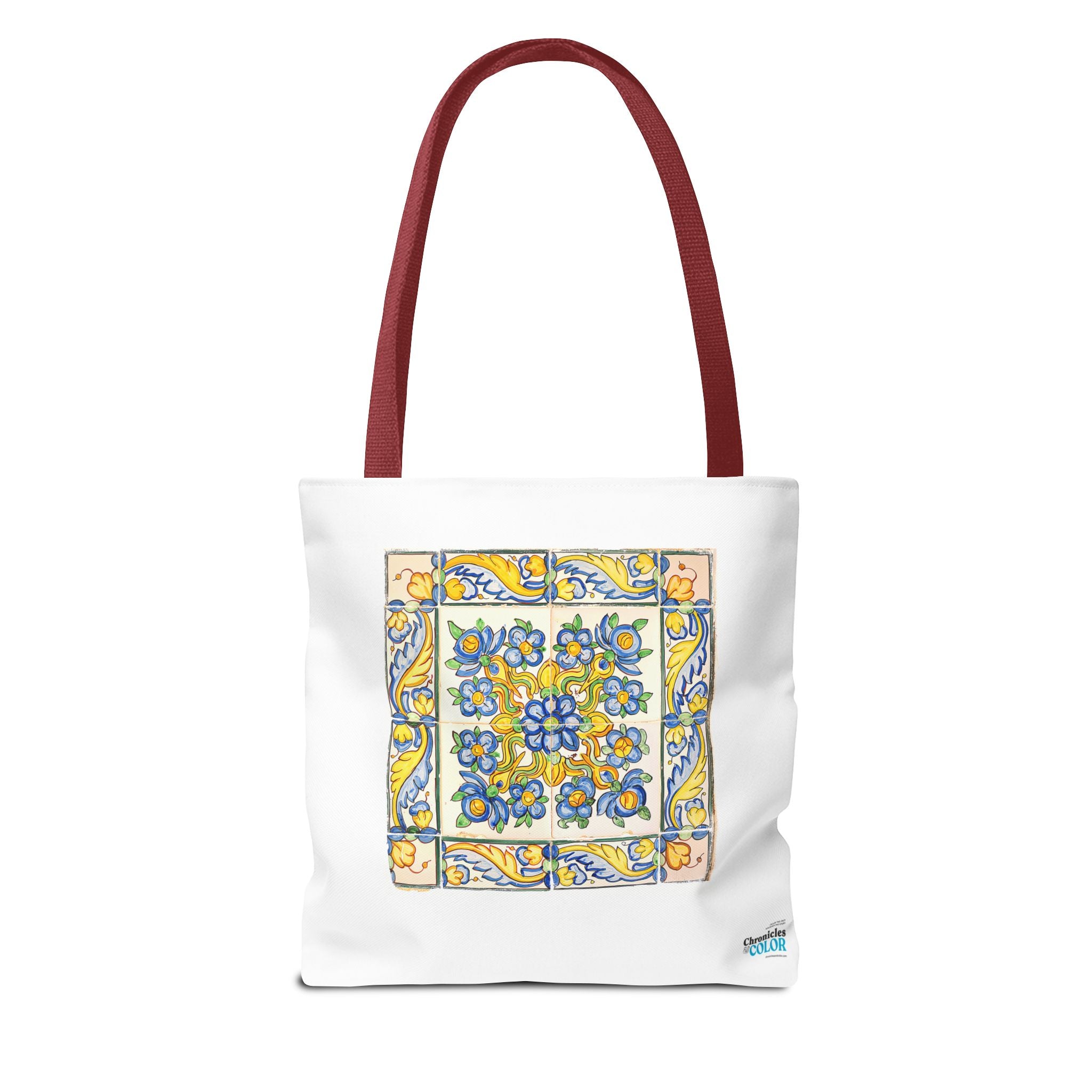 Celebrate the timeless beauty of Portuguese craftsmanship with this Vintage Yellow Floral Tile Pattern Tote Bag. Inspired by eighteenth-century azulejos, this design captures the graceful fusion of Baroque drama and Rococo elegance. Hand-painted motifs of curling vines and delicate blossoms evoke the artistry that once adorned palaces and cathedrals across Lisbon. The bright cobalt and golden hues dance across a radiant white glaze—a tribute to the tin-oxide technique that gave these ceramics their luminous charm. Perfect for adding a touch of historic warmth and European flair to your day.